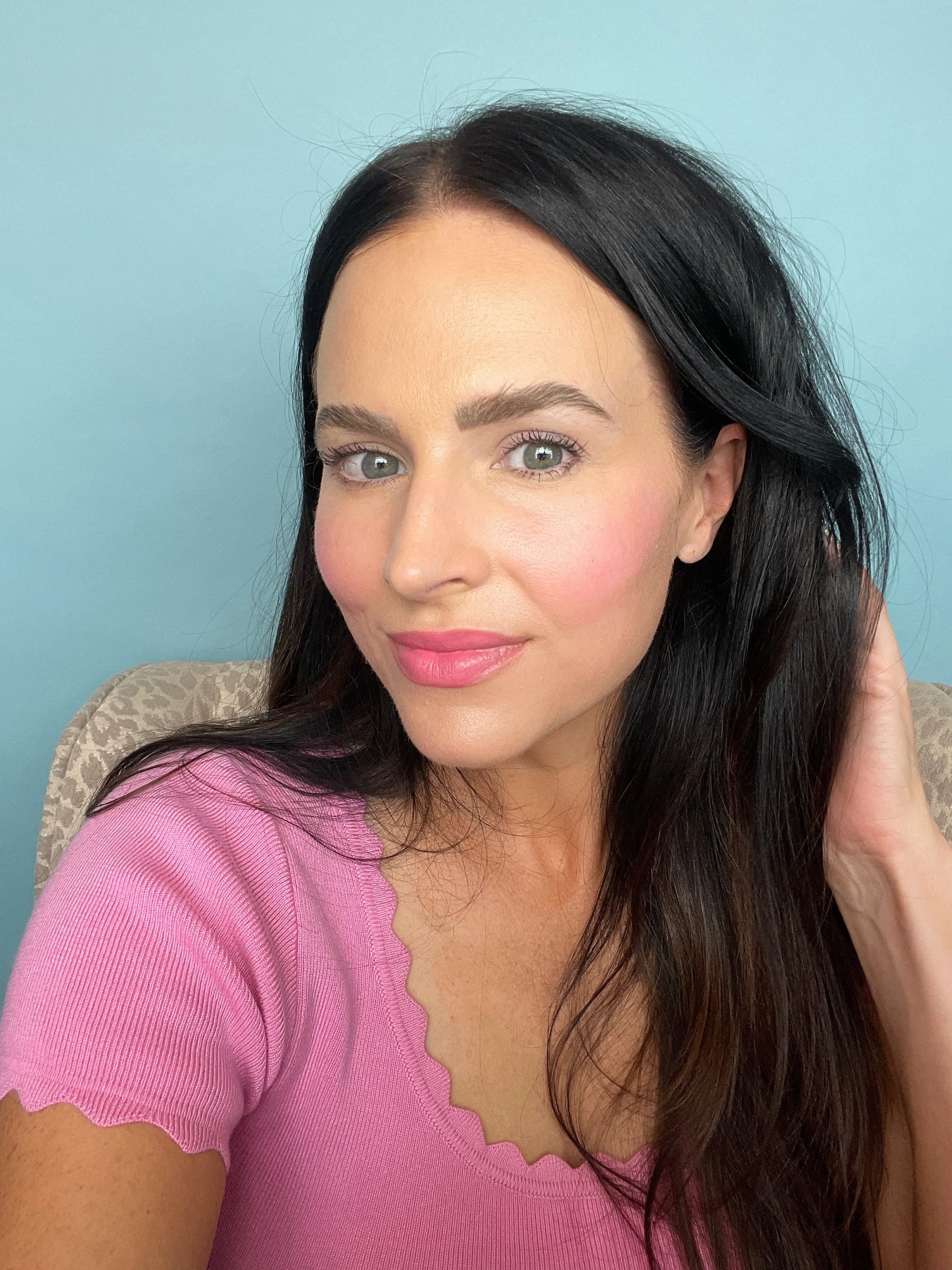 One of my go-to techniques for this is to use my blush product as my lip product too. The shared color does a few things for us: