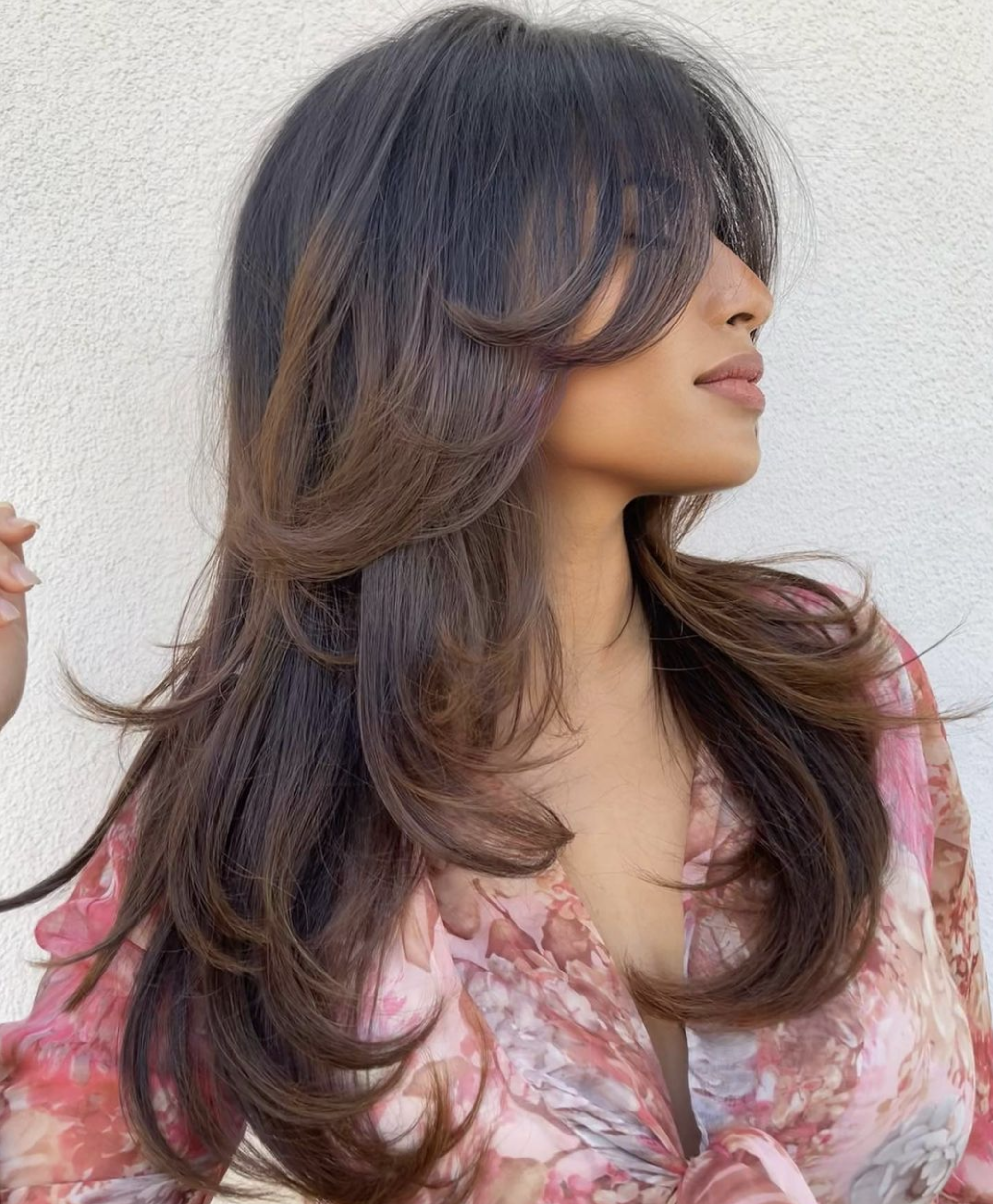 The same shaggy layers but styled with less flip at the ends for a more lived in and undone finish